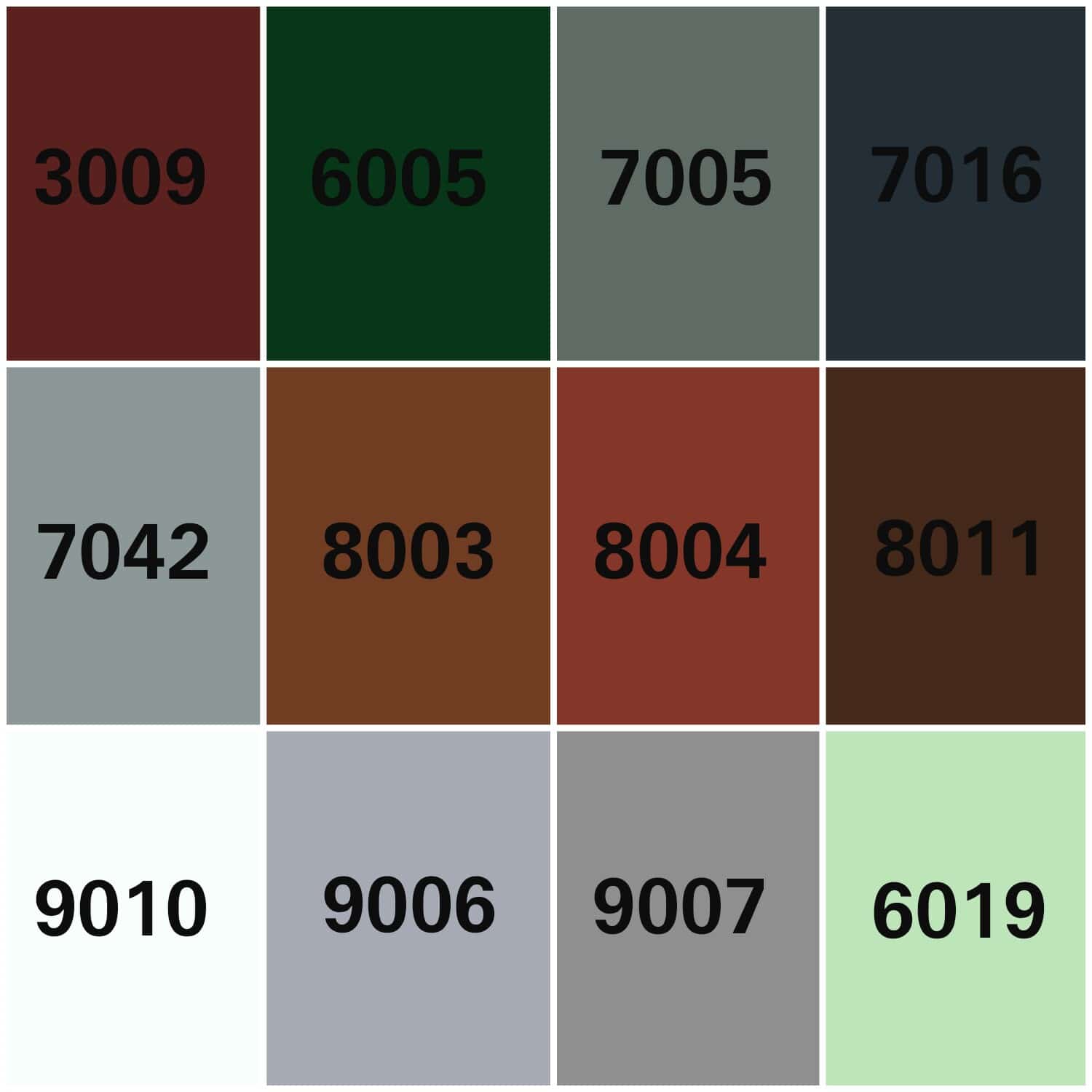 | Szín | Antracit szürke RAL7016, Barna RAL8011, Fehér RAL9010, Horganyzott |
