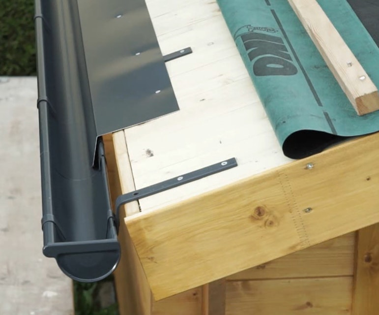 Orombádog + cseppentőlemez segítségével biztosítható a faházak szakszerű tetőhéjalása.
