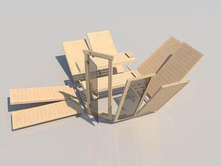 - 68 mm vastag (panel) szendvics-szerkezetű fal elemekből könnyen és gyorsan összeépíthető finn szauna