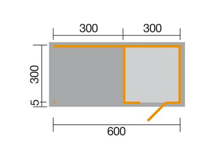- Prémium lapostetős kerti faház 600 x 300 cm = 3 x 3 m zárt faház +3m terasz oldaltetővel