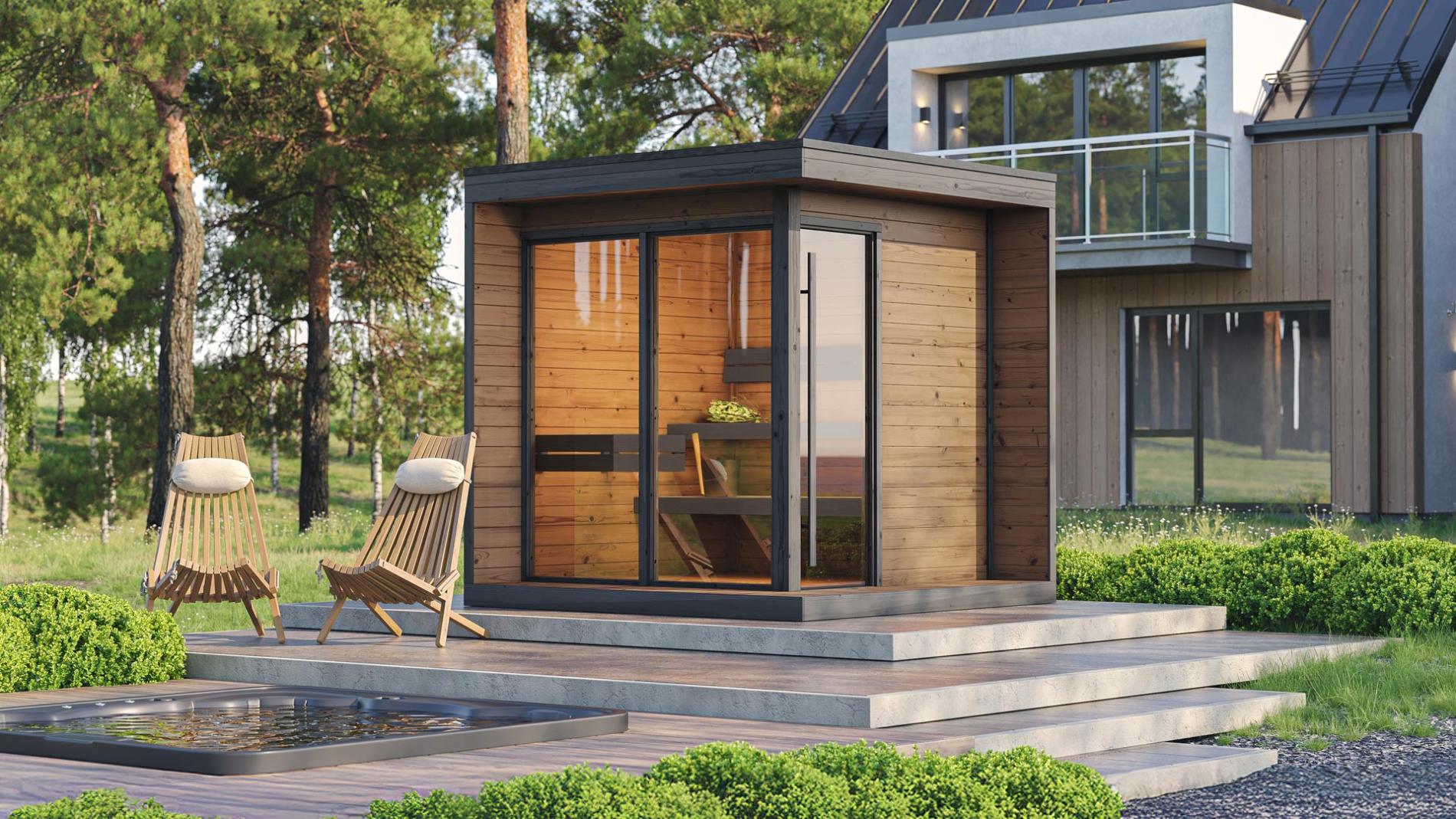- Stílusos wellness a Viira szaunaházban. A tágas üvegfront és az elegáns hőkezelt nyárfa felületek tökéletesen illeszkednek egymáshoz, és harmonikusan illeszkednek a kertbe. Az átgondolt berendezésnek köszönhetően kompakt helyen élvezheti a wellnesst. Ezzel a kerti szaunával nagyon közel van a természethez, hátradőlhet és pihenhet.