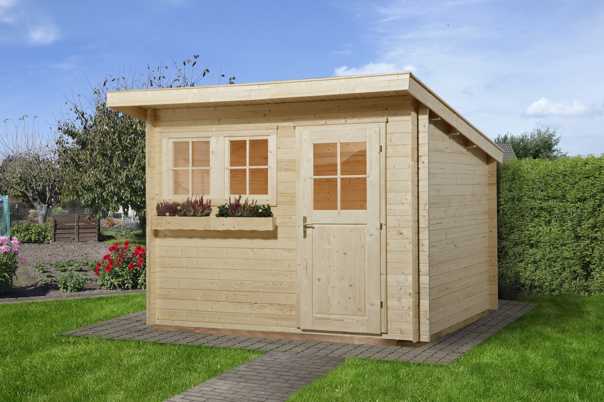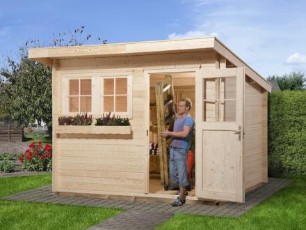 Szerszámos faház Weka 116-os típus; 28mm vastag  masszív oldalfalakkal és padlóval együtt lapra-szerelten kerül kiszállításra a következő műszaki tartalom szerint: