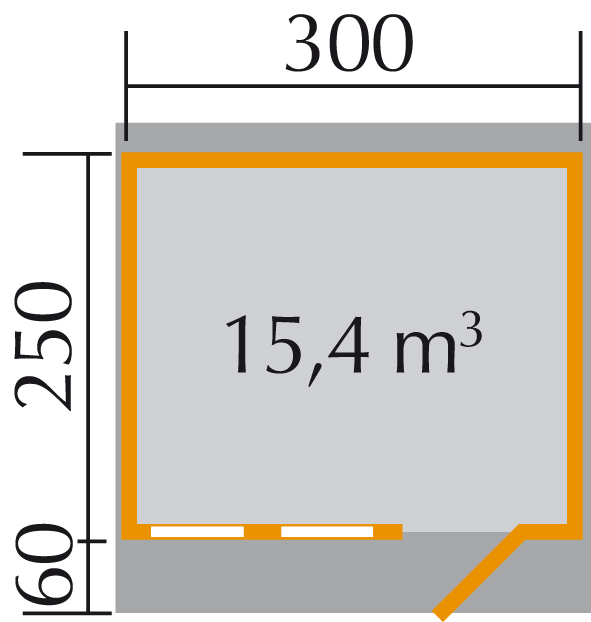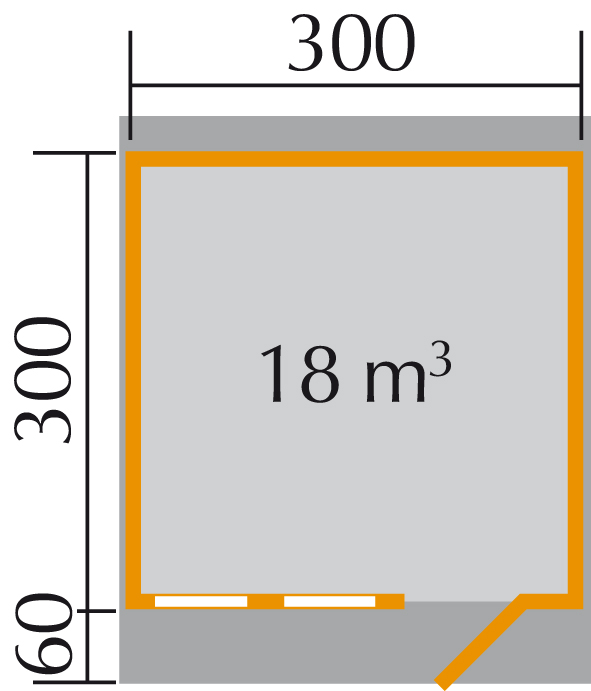 A kívánt alapozási méretű faház a fenti fotó melletti választógomb segítségével jelölhető ki: 300 x 250 cm vagy 300 x 300 cm  alapozási méretben,  60 cm-es  eresz túlnyúlással