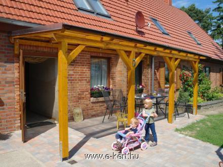- Terasz előtető, időjárásálló terasz tető ragasztott, minőségi, alaktartó faanyagból készült tartószerkezet