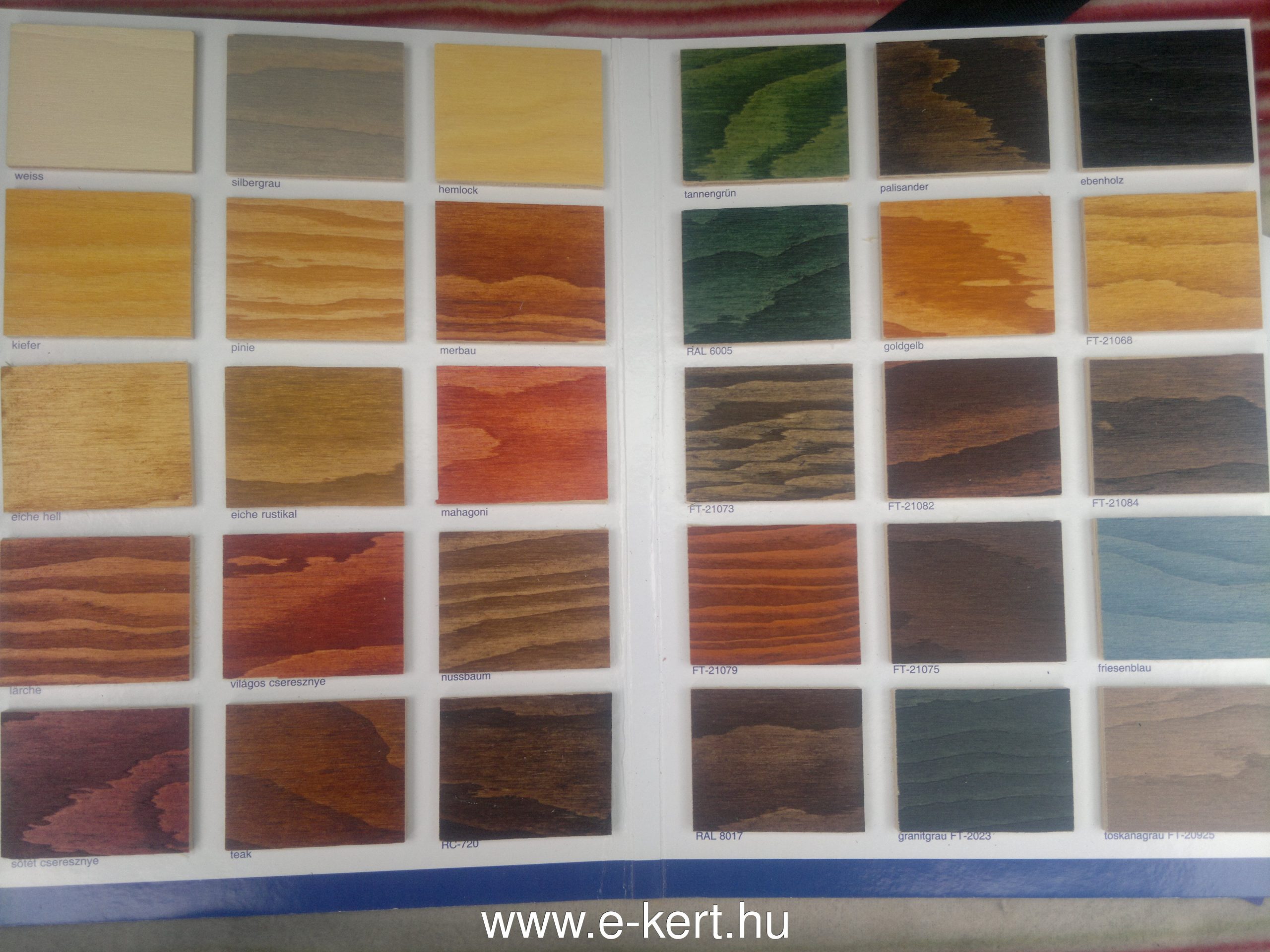 - Választható alap színek: Dióbarna, Cseresznye, Vörösfenyő, Tölgy, Mahagóni, Mogyoróbarna, Fenyő zöld